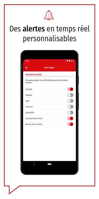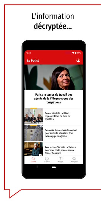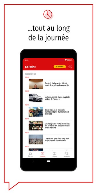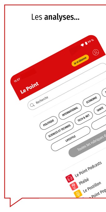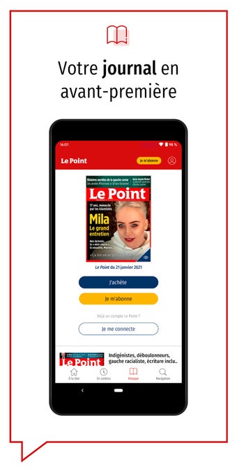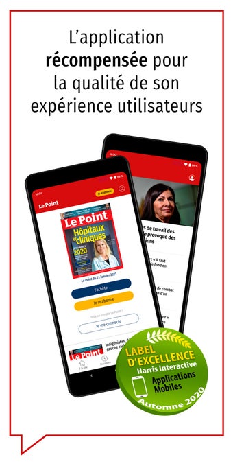 Tidningen Le Point erbjuder sina läsare ett annorlunda sätt att ta emot nyheter: den första informationen i realtid, den andra med ett urval av de mest intressanta artiklarna och den tredje genom en personlig prenumeration. Läsaren har möjlighet att anpassa nyheterna enligt sina intressen.
